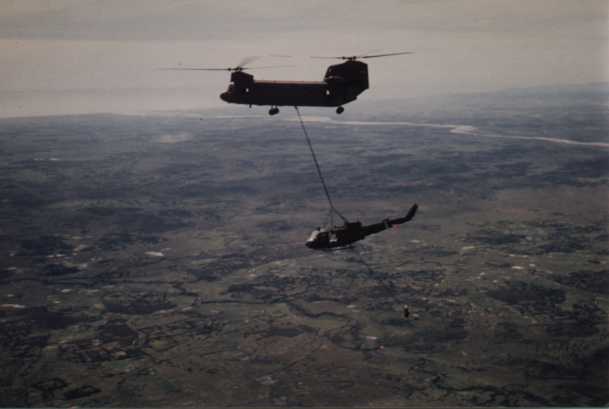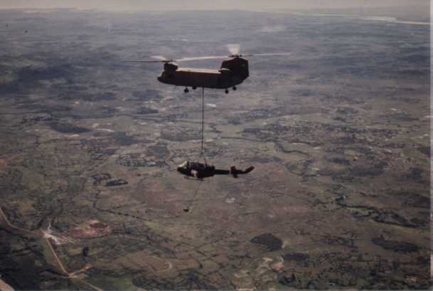 CH-47 Chinook "hooks" a 176th bird back to the Manor.