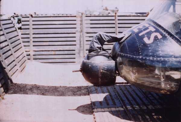 This is a Maint solution to a problem ship. Strip it and put it out to sea, No one thought that we could lift a Huey with a Huey. Picture and info contributed by Mike Parris.