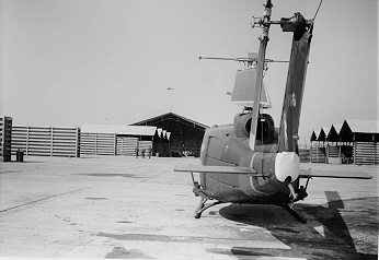 198th Bde. C&C aircraft UH-1H 69-15569 and LOH on the VIP pad at