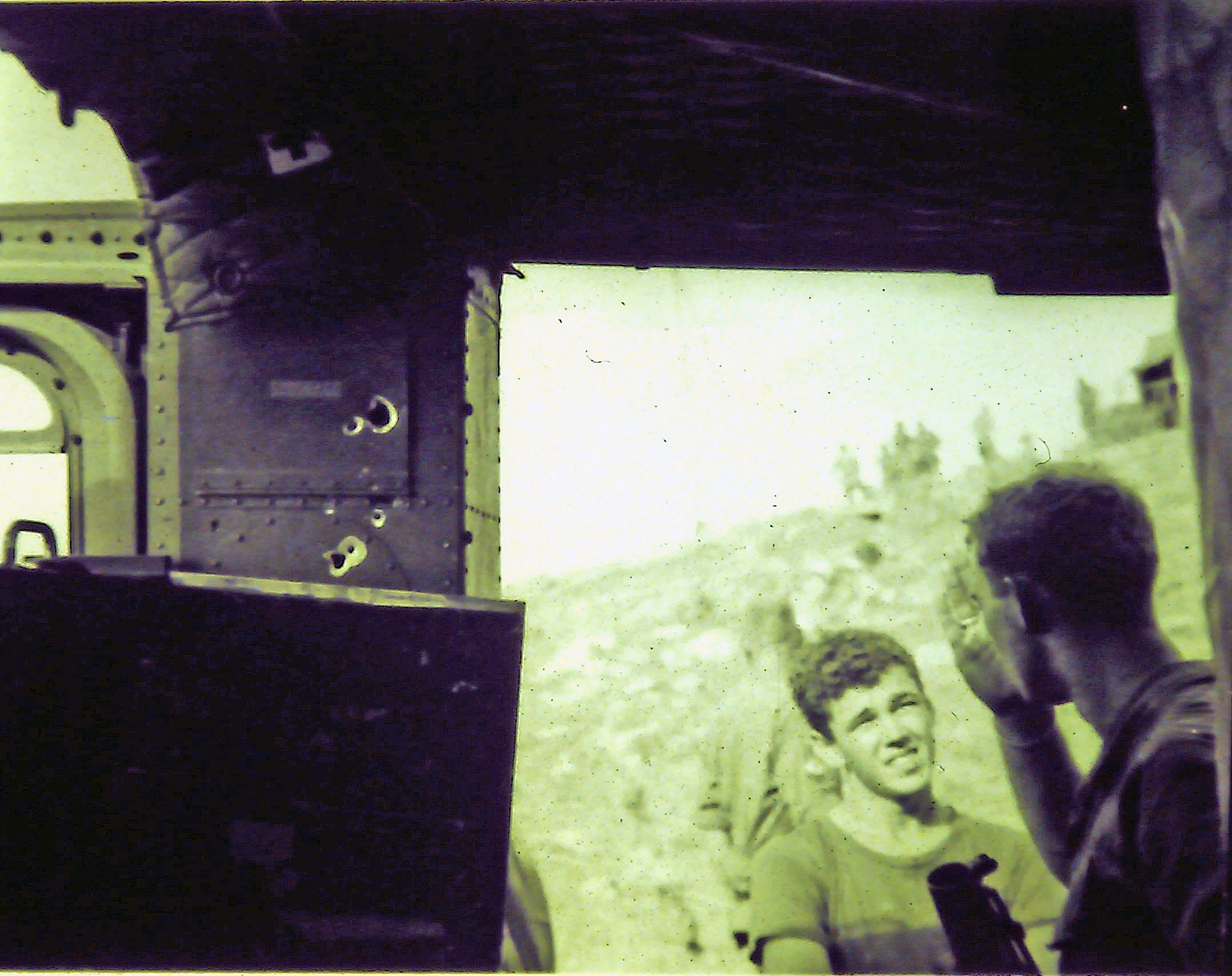 Ran into a guy in Alaska who was in the company and he told me that he had an 8x10 glossy of the bullet hole in the windshield (click for pic) taped to his footlocker. Wish I had that picture. (That guy in Alaska who had the picture was Butch Brant, who has since contributed the picture. Click the hypertext above to see the picture.)