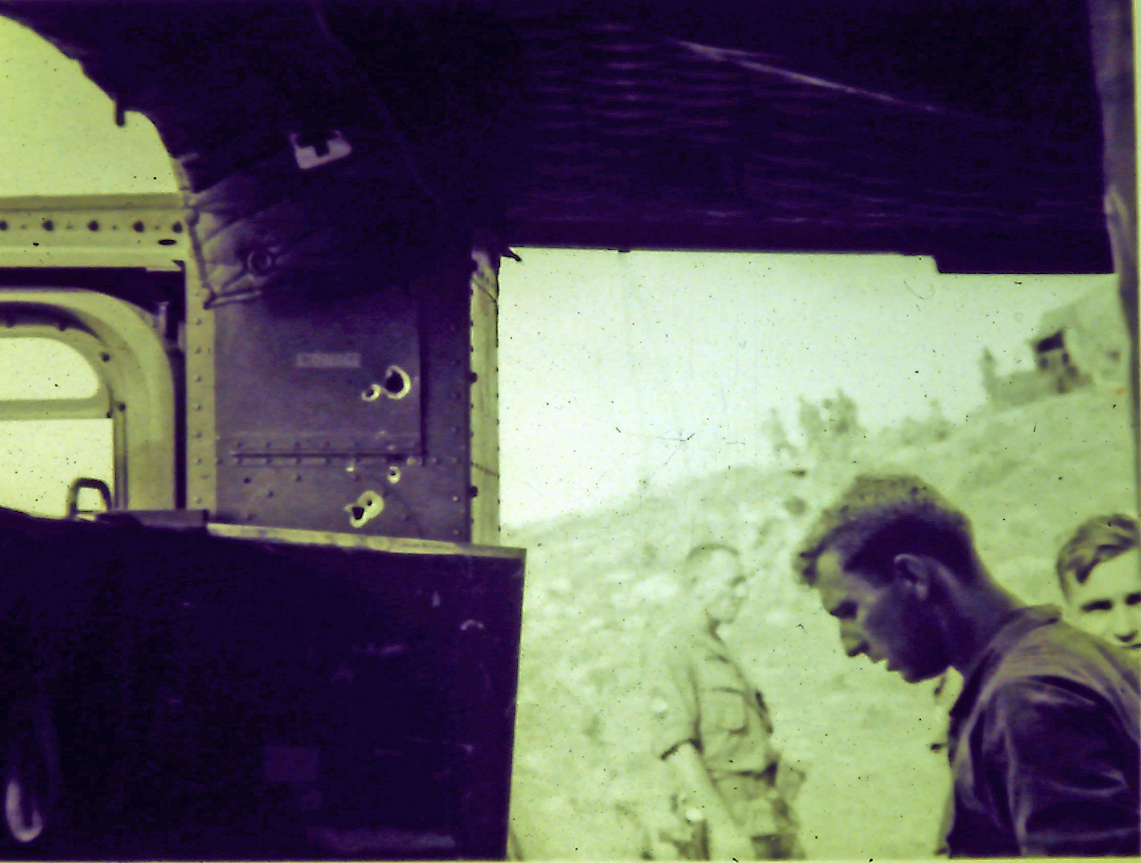 Neither one of the gunners got a shot off. I think the gunner got shot in the hand and the C/E got it in the foot. Don't know about the pax that we had on board. Well MM-0 was now flying formation and giving us the once over visually. He wanted to know how much fuel we had cuz we had a steady stream coming out. Our fuel was at 700 lbs. if I remember correctly. Also wanted to know the extent of injuries to C/E cuz we must of had a gallon of red paint in the C/E compartment which was showing red all over the left side of the belly. I still couldn't believe that this ship was going to fly so we went into LZ Hustler.
