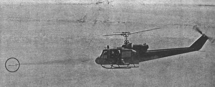 "We continued firing and tried to land as quickly as possible," said 1LT Bristow. Co-pilot WO1 Paul E. Lent (Richmond Springs, N.Y.) radioed two distress calls.