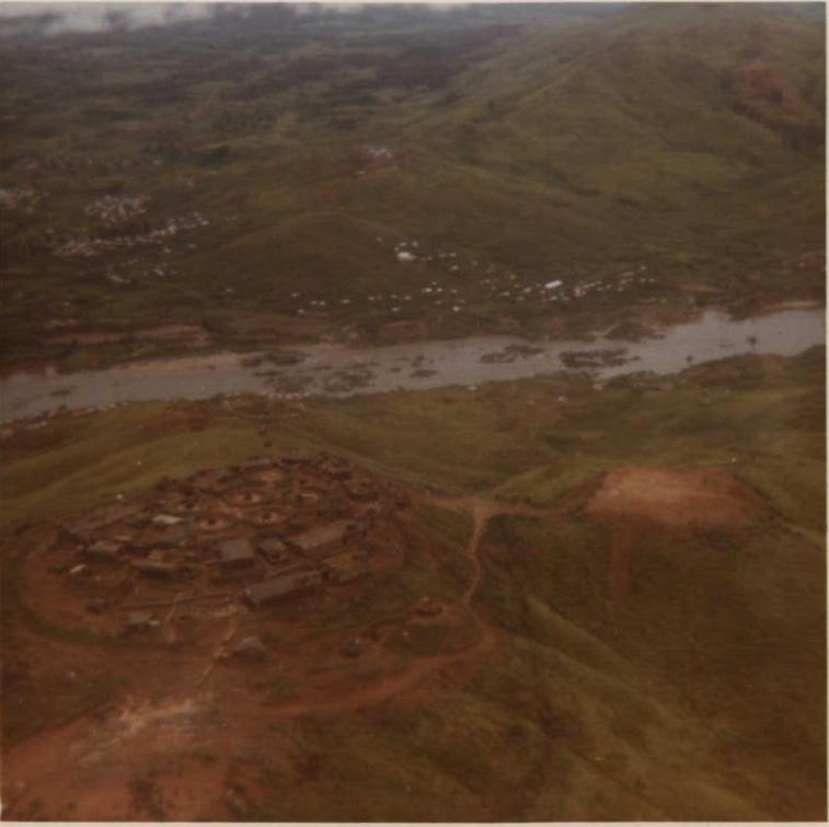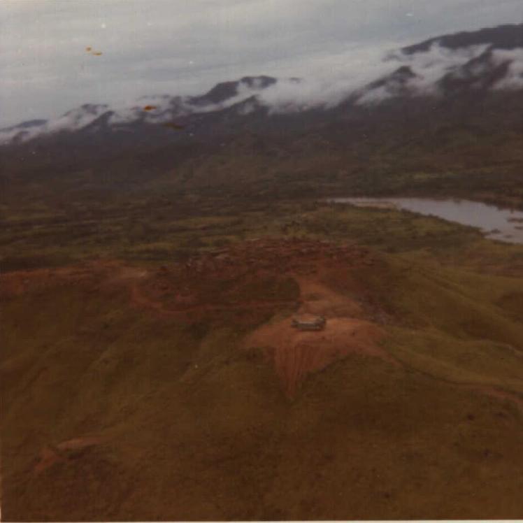 Hercules 430 at t high hover or the empty gun position. Look closely just between the river and the FSB. You can just make out the rotor plane of the CH-54 and the howitzer underneath. |